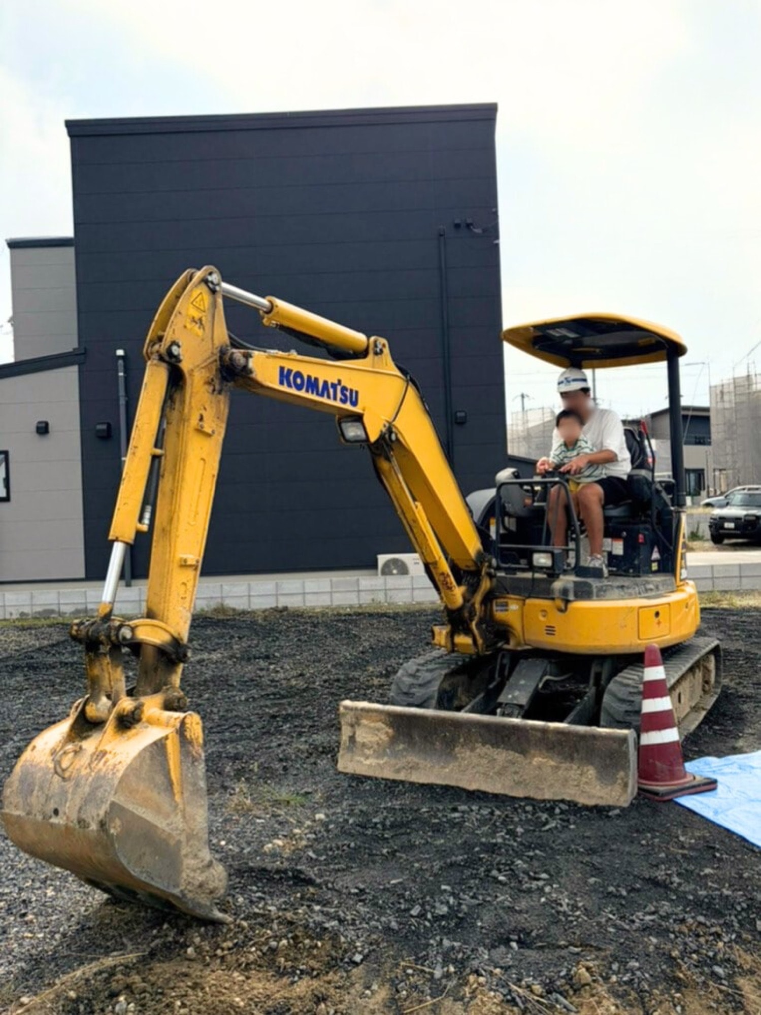 ユンボDE撮影会では、本物の重機に乗って記念撮影。
