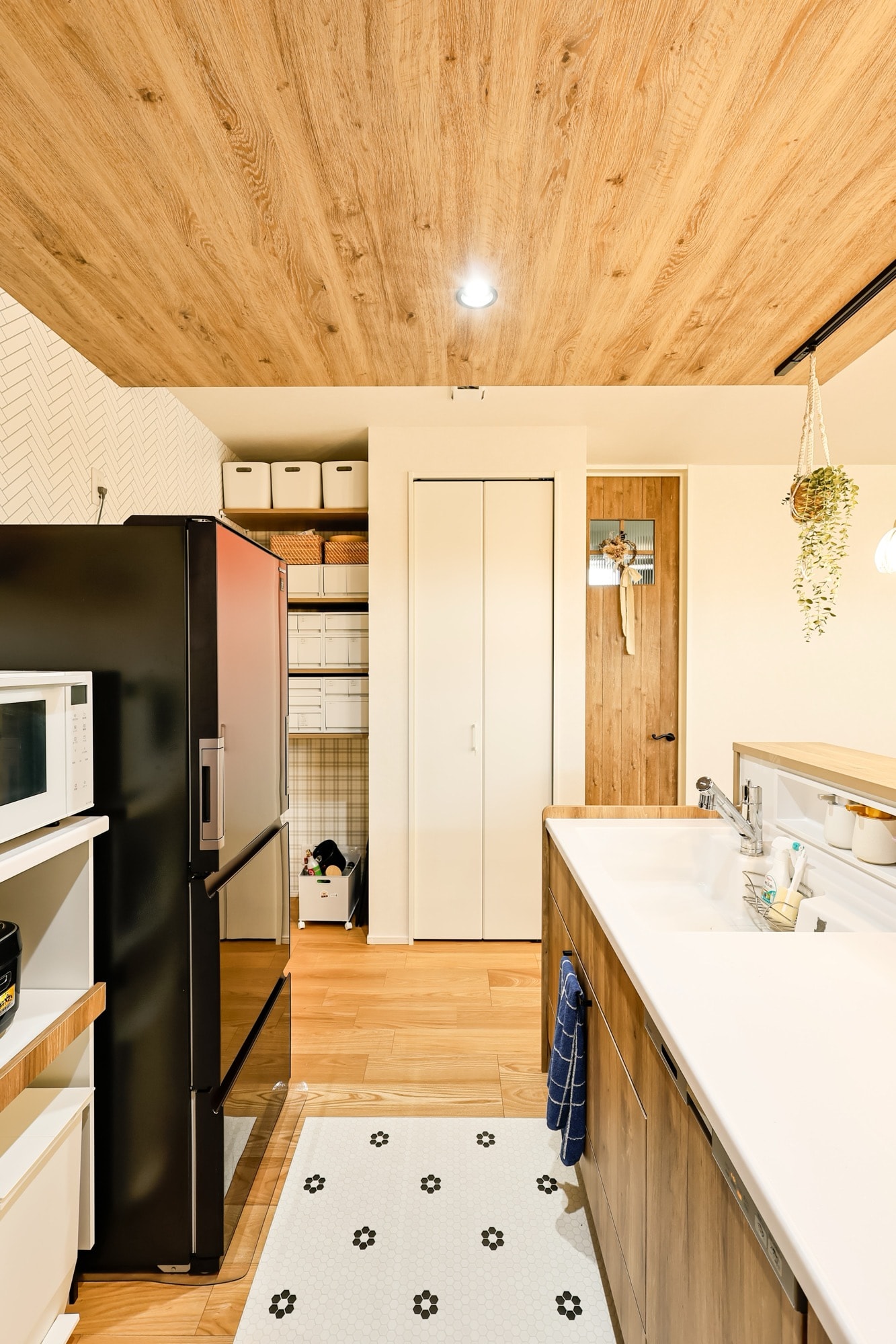 また、1階には大容量のファミリークローゼットとシューズクロークを配置。キッチン奥のパントリーにはセカンド冷凍庫を設け、リビングから見えないよう目隠しするなど、日々の使いやすさにも徹底的に配慮されました。