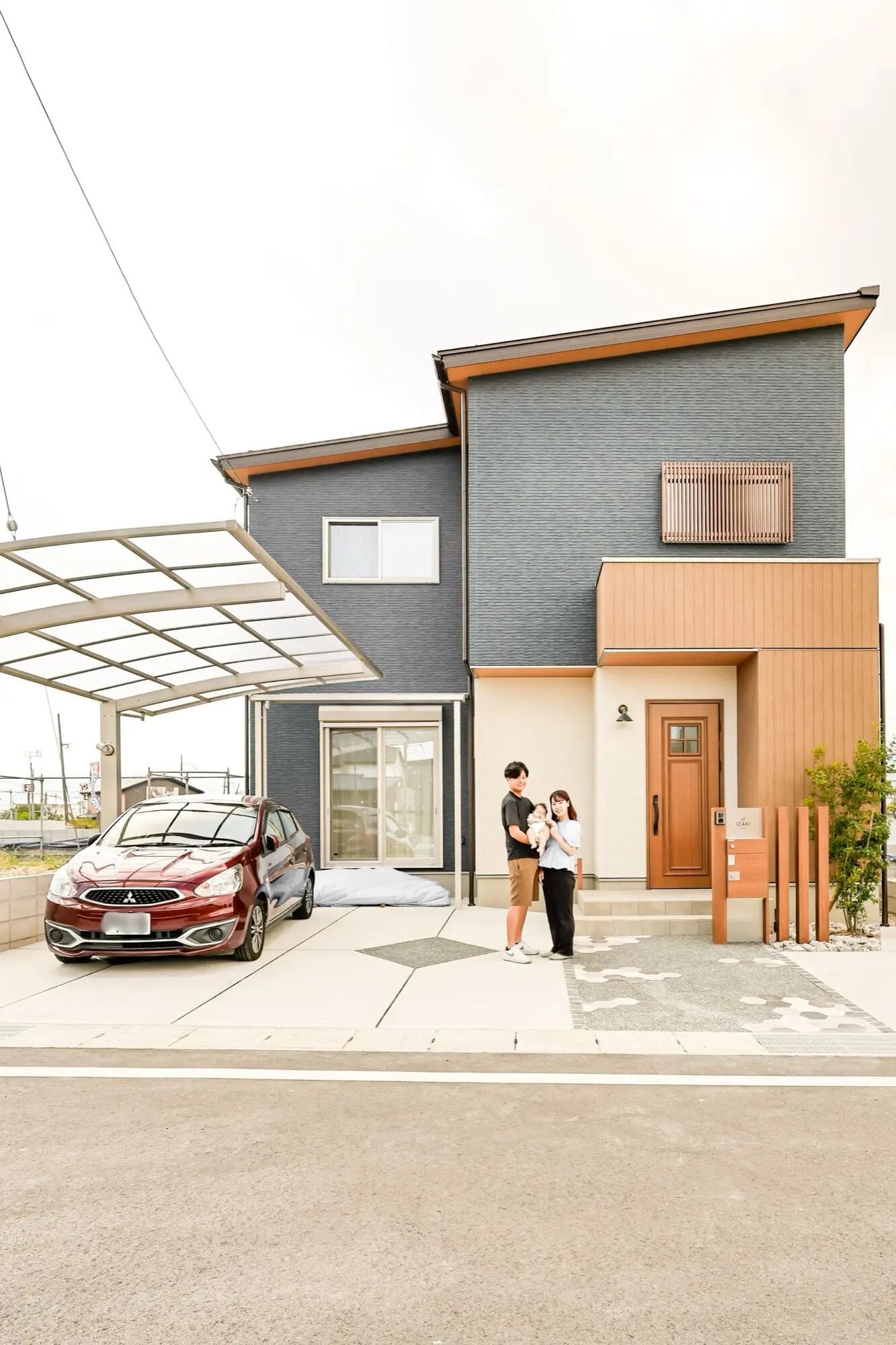 車を縦列で2台停められる駐車スペースに加え、自転車置き場やウッドデッキも完備し、暮らしやすさをしっかりと叶えています。
